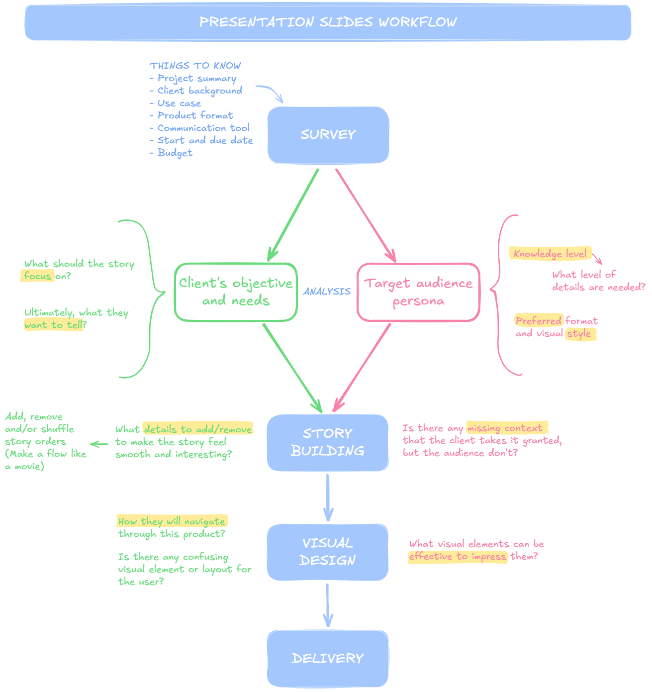 Things like that. This principle doesn’t only apply to presentation projects. It’s universal — by figuring out the core issue, the fundamental solution, and the limitations to consider, you can effectively deliver the best output while saving time and energy.